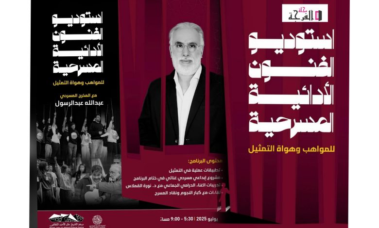 بالتعاون بين مركز الشيخ جابر الأحمد الثقافي (دار أوبرا الكويت ) والهيئة العربية للمسرح ينطلق مشروع استوديو الفنون الأدائية المسرحية بدولة الكويت تحت اشراف المخرج المسرحي القدير عبدالله عبدالرسول والدكتور نورة القملاس استاذة الغناء العالمي وتربية الصوت..