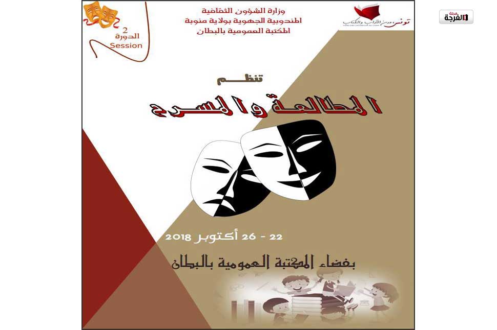 في إطار البرنامج الوطني مدن الآداب والكتاب تنظّم المكتبة العمومية بالبطان في الفترة الفاصلة بين 22 و26 أكتوبر 2018 تظاهرة ثقافية بعنوان “المطالعة والمسرح”.