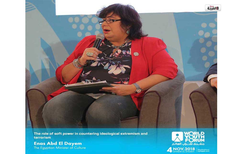 أكدت الدكتورة ايناس عبد الدايم وزير الثقافة فى كلمتها بجلسة القوى الناعمة فى مواجهة التطرف الفكرى ضمن فعاليات منتدى شباب العالم بمدينة شرم الشيخ والذى يعقد تحت رعاية الرئيس عبد الفتاح السيسى رئيس الجمهورية ان الاعمال الارهابية لاتصدر عن متذوق للثقافة والفن واشارت إن قوة مصر الناعمة احد أهم المؤثرات الايجابية الدولة الشاملة وتسهم بجدية في تشكيل وعي الشباب كما كانت على مدار التاريخ من أهم دعائم تماسك المجتمع وأضافت أن وزارة الثقاف تبنت استراتيجية تهدف الى بناء الانسان وتلبية الاحتياجات الفكرية والفنية للشباب من خلال تقديم ورش عمل متنوعة وندوات أدبية وعروض فنية ومسرحية تساعد على اعمال العقل وتخاطب الوجدان وتهدف ايضا الى الدفع بالمواهب الواعدة للمشاركة في كافة المشروعات الثقافية والفنية المقدمة .