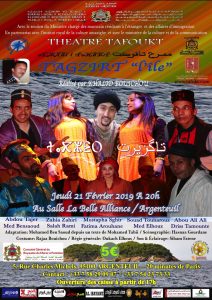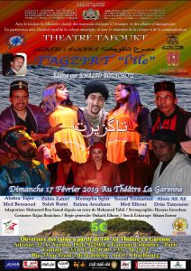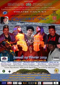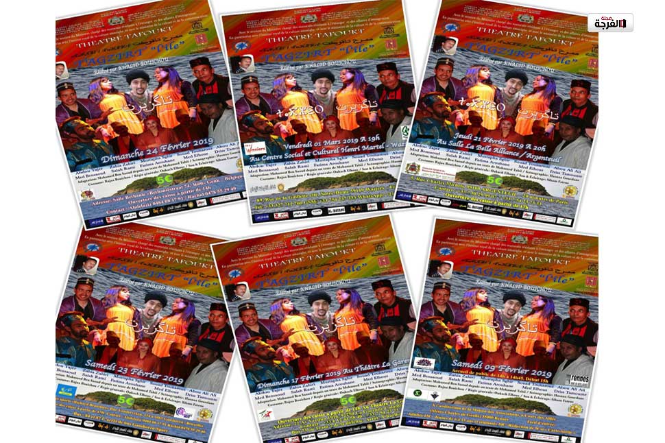 بدعم من الوزارة المكلفة بالمغاربة المقيمين بالخارج وشؤون الهجرة في إطار برنامج الجولات المسرحية بالأمازيغية الموجهة لمغاربة العالم. تقوم فرقة مسرح تافوكت بجولة بعدة مسارح وقاعات بكل من فرنسا وبلجيكا. بمسرحية – تاڭزيرت – بمعنى ” الجزيرة “ والتي سبق وأنجزت في إطار دعم وزارة الثقافة والاتصال – قطاع الثقافة. إنتاجا و ترويجا و بشراكة مع المعهد الملكي للثقافة الأمازيغية. دراماتورجيا وإخراج المسرحية من توقيع المخرج خالد بويشو.