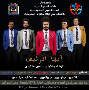 في العرض الثانى (أيها الرئيس)، توليف و أخراج حسين مالتوس و اداء كل من (سجاد فلاح، عبدالله احمد، حسين مالتوس،جهاد العكيلى و على الدر جبار)، أعتمد العرض الثيمه الكوميديه المباشره في أنتقاد الوضع الراهن في الوطن، و كان عرض جريئا في فضح ما يتعرض له العراق من السلب و النهب على أيدى مجموعه من الفاسدين المتواجدين في داخل السلم السلطوي المتحكم في البلاد.