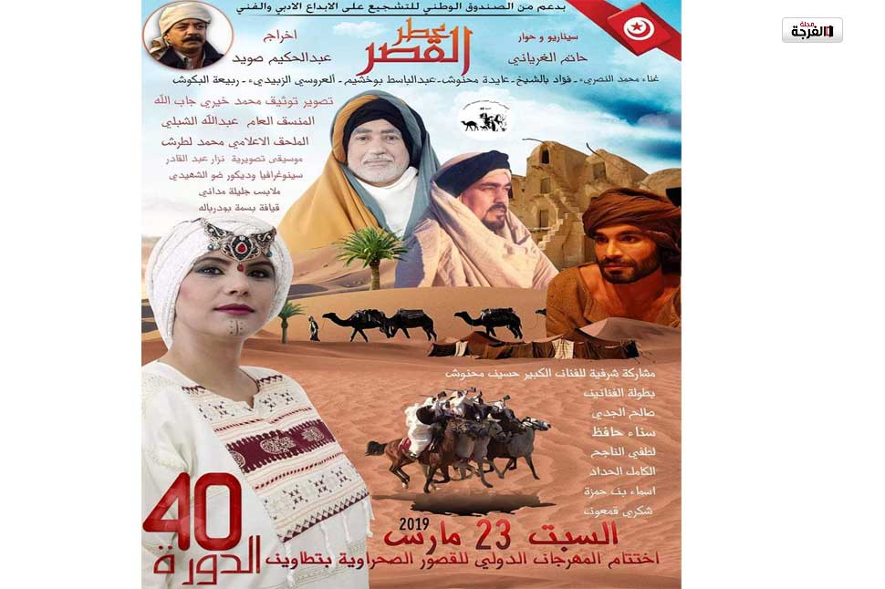 يختتم مهرجان القصور الصحراوية بتطاوين فعاليات دورته الاربعين بملحمة عطر القصر يوم السبت 23 مارس, و هي ملحمة سيناريو وحوار حاتم الغرياني ومن اخراج عبد الكريم صويد .