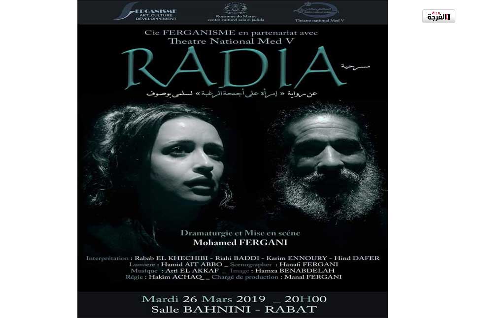 احتفالا باليوم العالمي للمسرح، تقدم لكم فرقة فركانيزم بشراكة مع المسرح الوطني محمد الخامس وبتعاون مع المركز الثقافي سلا الجديدة عرض مسرحية ” راضية” وذلك غدا الثلاثاء 26 مارس 2019 بقاعة باحنين بالرباط..