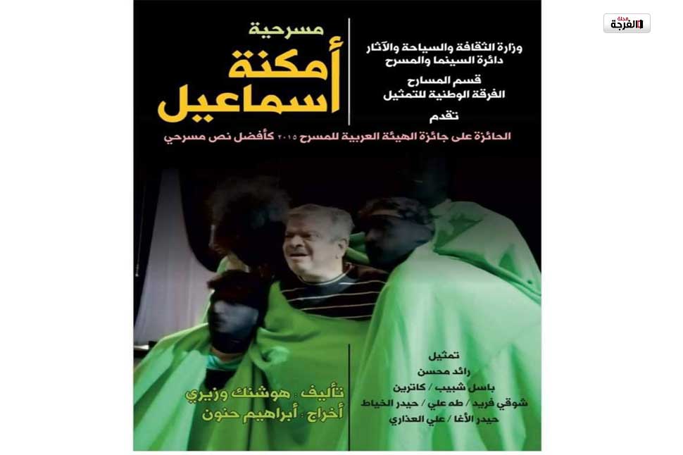 ضمن فعاليات أيام مسرحية التي انبثقت في بغداد بمناسبة اليوم العالمي للمسرح قدمت مسرحية أمكنة اسماعيل على خشبة المسرح الوطني وهي من تأليف هوشنك وزيري واخراج ابراهيم حنون، وقد جسّد أدوار العرض كلّ من الممثل رائد محسن/ اسماعيل وباسل شبيب/ الطبيب وكاترين/ الممرضة وبعض اوهام اسماعيل..