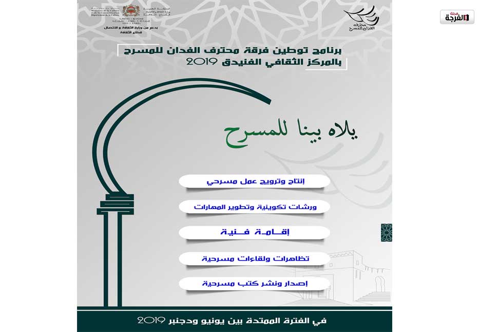 يحتضن المركز الثقافي بالفنيدق برنامجا ثقافيا ومسرحيا مكثفا في الفترة ما بين يونيو وديسمبر 2019 بدعم من وزارة الثقافة والاتصال قطاع الثقافة لتوطين الفرق المسرحية بمسارح المملكة.