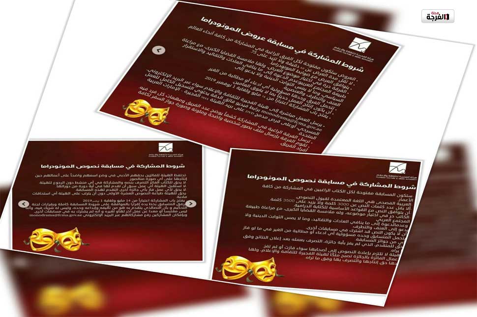 بالامارات: تعلن هيئة الفجيرة للثقافة والإعلام عن فتح باب المشاركات في مسابقة عروض و نصوص المونودراما 2019-2020