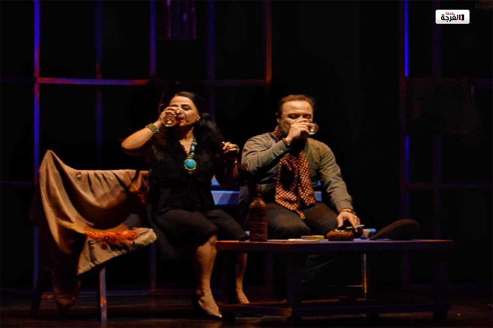 نجح المخرج “مأمون خطيب” في تقطيع مشهد الحوار الطويل جدا، في النص الأصلي، بحالات إظلام تصحبها الموسيقى، مع خلع الممثلين لقطعة من ثيابهم بصورة تدريجية، مغيرا بذلك صورة المشهد الواحد وزمنه، وناقلا للمتلقي أحساسا بتمدد هذا الحوار بين الزوجين لأيام كثيرة، وليس خلال ليلة واحدة، هى ليلة العودة للبيت من المستشفي، مازجا بحذق بين مشهد الحاضر ومشاهد الماضي المستدعاة والمتعددة المشاعر، والكاشفة في نفس الوقت عن جريمة إقدام الزوجة على قتل زوجها، ليست نتيجة للحظة انفعالية، فجرها التعاطي المتزايد للخمر من قبل الزوجة، ولكنها جريمة كامنة في عقل الزوجة المتناحرة طوال الوقت مع زوجها، والمرتعبة من تفوقه الأدبي والجماهيري عليها، فهو كاتب روايات بوليسية تجد رواجا أكثر من لوحاتها التشكيلية، مما ولد بينهما صراعا حول التفوق، دعمته النظرة النسوية للمسرحية التي ترى أن قبول الزوجة دخول علاقة زواج، يعنى خسرانها للعديد من سمات التفوق عندها، واشتباكها في حرب طاحنة من أجل استعادة تلك السمات المفقودة، حتى ولو أدى الأمر لقتل هذا الزوج السالب لشخصيتها المتميزة.