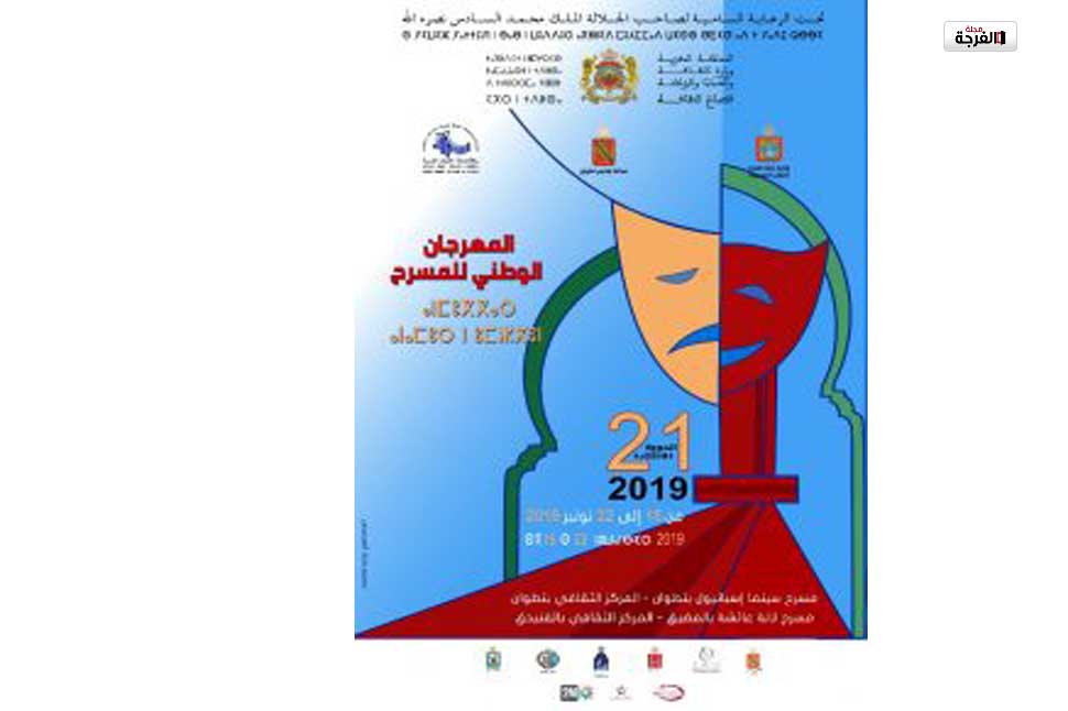 تحت الرعاية السامية لصاحب الجلالة الملك محمد السادس نصره الله، تنظم وزارة الثقافة والشباب والرياضة-قطاع الثقافة، بشراكة مع عمالة إقليم تطوان وبتعاون مع وكالة إنعاش وتنمية الشمال والمجالس المنتخبة بمدن تطوان والمضيق والفنيدق، الدورة الواحدة والعشرين للمهرجان الوطني للمسرح بمدينة تطوان من 15 إلى 22 نونبر2019.