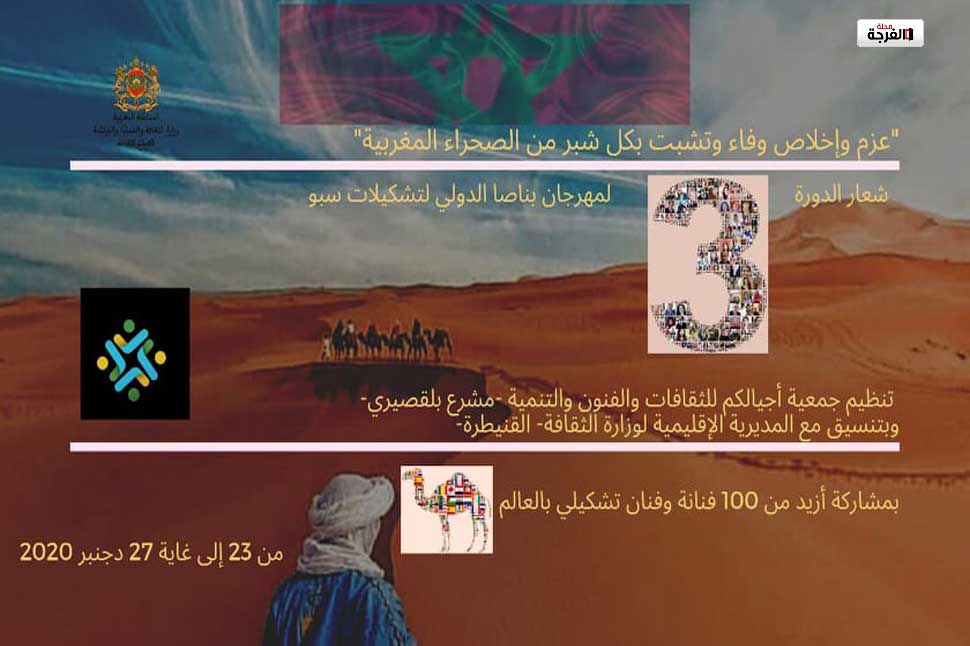 بتنسيق مع مديرية وزارة الثقافة بإقليم القنيطرة، تنظم جمعية أجيالكم للثقافات والفنون والتنمية بمشرع بلقصيري مهرجان باناصا الدولي لتشكيلات سبو في دورته الثالثة (دورة افتراضية)، تحت شعار ”عزم وإخلاص ووفاء وتشبت بكل شبر من الصحراء المغربية“ وذلك خلال الفترة من 23 إلى 27 دجنبر الجاري، حيث سيعرف المهرجان تنظيم مجموعة من الأنشطة المتنوعة يشارك فيها أكثر من 200 فنان من داخل وخارج المغرب، بالإضافة إلى تنظيم معرض تشكيلي يشارك فيه 140 فنانا وفنانة .