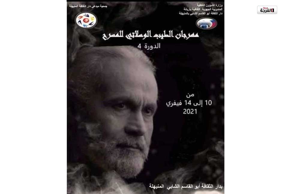 افتتحت يوم الأربعاء بدار الثقافة أبو القاسم الشابي بالمنيهلة فعاليات الدورة الرابعة لمهرجان الطيب الوسلاتي للمسرح، وهي دورة مغاربية ستتواصل إلى يوم 14 فيفري الحالي، وتسهر على تنظيمها دار الثقافة بالمنيهلة وجمعية مبدعي دار الثقافة بالجهة.