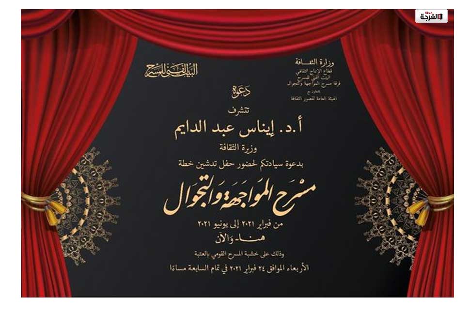 تعلن الفنانة الدكتورة إيناس عبد الدايم وزيرة الثقافة خطة مسرح المواجهة والتجوال لعام 2021 خلال الاحتفالية التى يقيمها البيت الفني برئاسة الفنان اسماعيل مختار وذلك فى السابعة مساء الأربعاء 24 فبراير بالمسرح القومي بالعتبة بحضور الدكتور أشرف صبحي وزير الشباب والرياضة ، الدكتورة نيفين القباج وزير التضامن الإجتماعي ، المخرج خالد جلال رئيس قطاع الإنتاج الثقافي ، وعدد من قيادات وزارة الثقافة والوزارات المعنية والفنانين والإعلاميين .