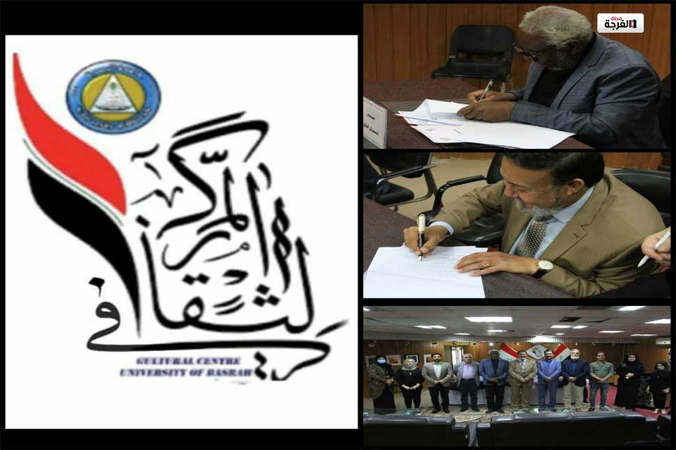 أبرم المركز الثقافي في جامعة البصرة ممثلا بمدير المركز الاستاذ الدكتور عبدالكريم عبود اتفاق تعاون مشترك مع نقابة الفنانين العراقيين فرع البصرة متمثلة بالسيد فتحي شداد رئيس نقابة الفنانين فرع البصرة وبحضور اعضاء الهيئة الادارية للنقابة ومجلس ادارة المركز الثقافي .