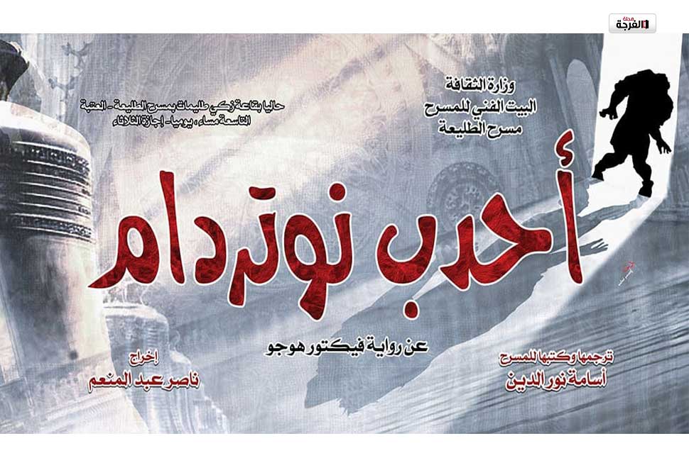 جدير بالذكر ان عرض ” أحدب نوتردام عن رواية ” أحدب نوتردام ” لفيكتور هوجو، ترجمها و كتبها للمسرح الكاتب الراحل أسامة نور الدين، من بطولة جورج أشرف، يحيى محمود ، رجوى حامد، مريم الجندي ، محمد دياب ، عمرو شريف، محمود طلعت ، فادي ثروت ، مي السباعي ، هبة قناوي ، محمد عبد الوهاب ، أحمد مخيمر ، حسام الشاعر، آية خلف، محمد حسيب، أشعار طارق علي ، موسيقى و ألحان كريم عرفة ، استعراضات كريمة بدير ، تصميم اضاءة أبو بكر الشريف ، ديكور حمدي عطية ، أزياء نعيمة عجمي، ماكياج إسلام عباس ، و من إخراج ناصر عبد المنعم .