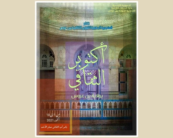 في إطار افتتاح الموسم الثقافي وإعادة الروح للحياة الثقافية،تنظم المندوبية الجهوية للشؤون الثقافية ببن عروس تظاهرة أكتوبر الثقافي وذلك من غرة أكتوبر إلى غاية 10 أكتوبر 2021 بالمركب الثقافي علي بن عياد بحمام الأنف.