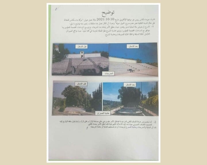 واليوم أطالب بسحب هذا ( التوضيح) لأنه يسئ أولا لمن ارتكبه، كما يسيء لصورة المغرب في الخارج، كما ألتمس من السيد عامل مكناس وبحكم غيرته على المدينة، أن يتدخل لكي يعطي تعليماته لإعادة بناء ما تم هدمه من مدرجات وبالتالي إعادة الاعتبار والاهتمام لهذا المسرح الذي لا نجد له نظيرا في المغرب. مسرح للهواء الطلق مؤسسة ثقافية وبناية معمارية في قلب مكناس قادرة على احتضان أكبر التظاهرات والمهرجانات الثقافية والفنية الدولية.