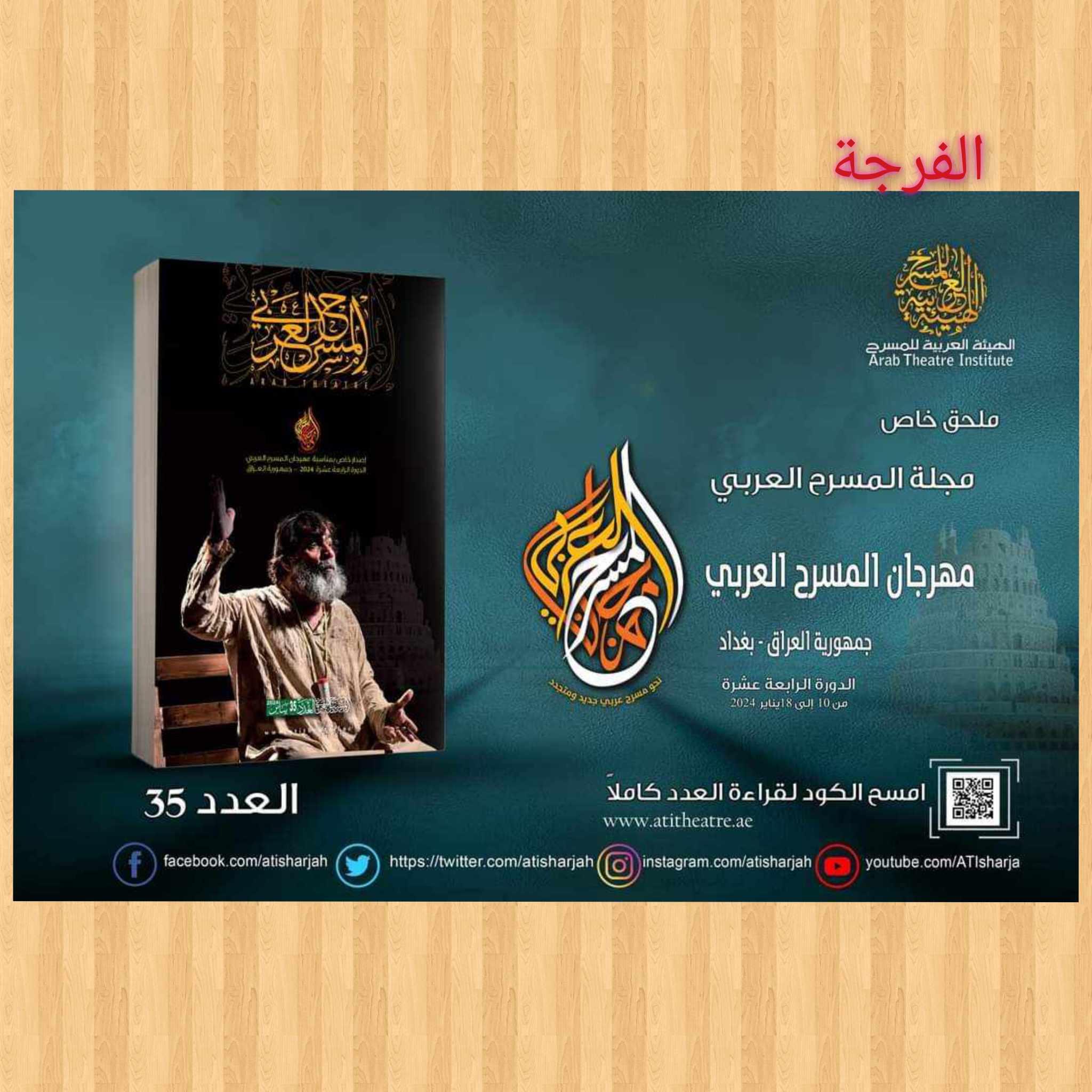 جاء الملحق الخاص الذي صدر مع العدد بمناسبة مهرجان المسرح العربي الذي ينعقد في العاصمة التاريخية بغداد بجمهورية العراق في الفترة 10 وحتى 18 يناير 2024، في 126 صفحة.