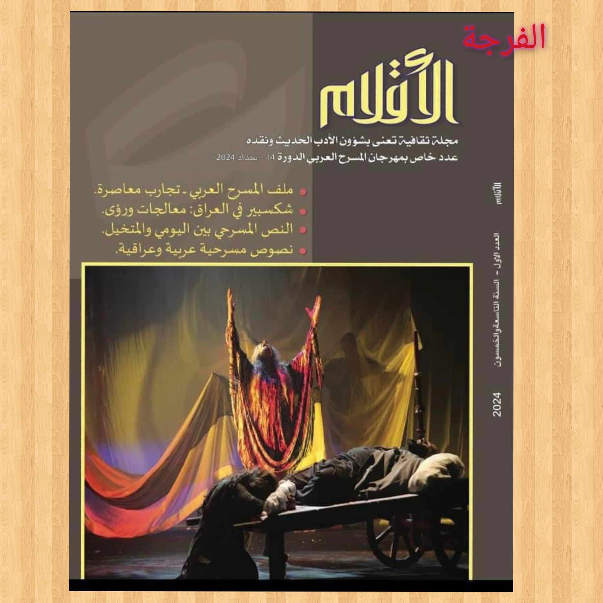 صدر اليوم العدد الخاص بـ”المسرح” من مجلة (الأقلام) العريقة التي تصدر عن دار الشؤون الثقافية_وزارة الثقافة, بغداد, والذي قامَ بتحريره د. عامر صباح المرزوك ود. بشار عليوي, وصدرَ بمُناسبة انعقاد ” مهرجان المسرح العربي” بدورتهِ الـ14 في بغداد, وسيكون العدد مُتاحاً لجميع ضيوف المهرجان, اذ تضمنَ العديد من الأبواب والمحاور البحثية والنقدية المسرحية بأقلام باحثين ونُقاد عرب وعراقيين فضلاً عن باقة من النصوص المسرحية والحوارات والترجمان, وتعنونتْ افتتاحية العدد التي كتبها رئيس مجلس إدارة المجلة ورئيس التحرير الشاعر د. عارف الساعدي بـ( المسرح يتنفس هواءَ بغداد), أما ملف العدد فحملَ عنوان “المسرح العربي تجارب معاصرة” فتضمن الدراسات التالية (مابعد 1988 في المسرح المصري المعاصر) للناقد د. محمد سمير الخطيب من مصر , ودراسة (عن سؤال التجريب في المسرح التونسي المعاصر) للناقد لطفي العربي السنوسي من تونس, و( المسرح المغربي المعاصر) للباحثة د. أمل بنويس من المغرب, و(المسرح السوري المعاصر) بقلم الناقد جوان جان من سوريا, و (عن المسرح السعودي المعاصر) للناقد سلطان النو من السعودية, و(المسرح الإماراتي المعاصر) للناقد أحمد الماجد من العراق, و(أحوال أهل البيت في مسرح لبنان) للناقد عبيدو باشا من لبنان, و (قراءة في تجربة الكاتب العُماني محمد بن سيف الرحبي) بقلم الناقد د. بشار عليوي من العراق, و ( المسرح الجزائري المعاصر) بقلم الناقدة د. سناء فرح من الجزائر, أما ملف ” مقالات نقدية” فتضمنَ جُملةً من الأبحاث والدراسات هي ( البنية التسجيلية في مسرح يوسف العاني) بقلم الباحث د. عامر صباح المرزوك , و(عواطف نعيم وتجليات الظاهرة المسرحية) بقلم عمار فاضل الخفاجي, و (السردية والأداء المونودرامي) للباحثة د. منتهى طارق المهناوي, و (شكسبير في العراق المعالجات والرؤى) للناقد د. سعد عزيز عبد الصاحب , والنص المسرحي ما بين اليومي والمتخيل المحكي) للكاتب المسرحي د. مثال غازي, و(الطقوس الاحتفالية ورمزيات تأسيس المسرح السرياني في العراق) بقلم د. نشأت مبارك, و(مسرح البساط تجربة في مسرح الفضاءات المفتوحة) للفنان محمود أبو العباس, و(اتجاهات الخطاب الفكري التربوي) بقلم الناقد د. حسين علي هارف, و(تشفيرات الفضاء الخالي الابداعية) بقلم الناقد د. عقيل مهدي يوسف, و(مقاربة تطبيقية لأثر شكسبير في المسرح العربي) بقلم الباحث الجزائري د. احسن تليلاني, وفي محور “ترجمان” خصَ المُترجم د. رعد عبد عون العدد بمادة مُترجمة عن الانكليزية حملت عنوان (مسرح التشهير: صعد الاذلال عبر الانترنيت). وفي باب “حوارات” تضمنَ حواراً مع الفنان المسرحي العراقي كاظم النصار أجرتهُ الصحفية نور اللامي, وحواراً مع المخرج المسرحي العراقي أنس عبد الصمد أجرى الحوار د. بشار عليوي, وفي باب “نصوص مسرحية” نُشرتْ 6 نصوص تُنشر لأول مرة هي (حارس المسرح) للكاتب عباس الحايك من السعودية, و (الطوافة) للكاتبة رشا المليفي من الأردن, و(أبو النور الحكواتي) للكاتبة روعة سنبل من سوريا, و(عجلة .. بين هنا وهُناك عجلة) للكاتب الدرامي والمسرحي عثمان الشطي من الكويت, و(السياب) للكاتب محمد صابر عبيد من العراق, وأخيراً (حكايات الشتاء) للكاتب ابراهيم الحُسيني من مصر, وفي محور “وجوه مسرحية عراقية” فتضمنَ تعريفاً بالفنانين المسرحيين العراقيين وهُم كُلاً من (عزيز عبد الصاحب/حامد خضر/ د. جبار جودي العُبودي/ د. ياسر البراك/أحمد سالار/ د. باسم الأعسم /ثائر هادي جبارة/مهدي سميسم/ د. كريم عبود/طلال حسن), وأُختِتمَ العدد بدراسة للكاتب علي سعدون حملت عنوان (الخطاب الثقافي في المسرح الشعبي).