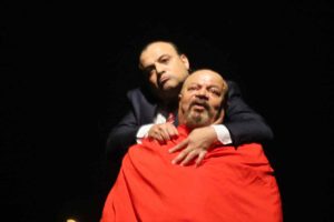 اذن التدمير هو الهدف وتبادل الأدوار سمح لنا بأن نتصفح هذا الفعل ليكون الواقع مكان فاعل لتصفية الحساب، وهي القيمة التي جعلها حنون ذروة العرض حيث الذل والمهانة في عالم تسوده المصالح وتحقيق الرغبات حتى ليبدو الواقع ما هو إلا حلبة للسباق. ولا يتحرك خارج الرهان وهو لحظة عابرة تنطوي على المصادفة التي تتجسد عبر لعبة القمار التي تجعل الفرد مهيا ان يكون سيدا وعبدا في الان نفسه، ما يعني ان السادية والمازوخية حاضرة والتلذذ في إيذاء النفس والآخر فاعلة ومهيمنة ليكشف لنا حنون ان الأنا التواقة للسلطة على الدوام مصابة بالنرجسية المرضية والمفردات التي بثها العرض تتضمن أفعال نفسية تغدو في النهاية ممثلة للمكبوت الذي يساهم بشكل حيوي في نسق السلطة، وهو ما جعل العرض يمضي في نسق الاشتغال السيكولوجي حتى تتضح كل الأفعال وكأنها تداعيات لمرضى نفسيين والتي توحي وكان العرض نفذ في مصح نفسي.