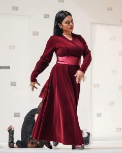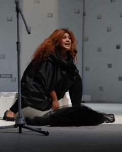 كانت الممثلة رنا الأدائية المتواصلة بين الفعل المرسوم والفعل المجسد للشخصية، هذا ما جعلنا نعود الى عروض (مارينا ابراموفيتش) الأدائية التي جعلت جسدها وسيلة الإيصال الأساسية مع المتلقي، وجعل العزاوي الفعل والحوار عند رنا هو الصورة الواحدة في زمن غير ثابت، وكانت التنمر هو أساس بنية المشهد وما يحدث داخل نص حيدر جمعة من متغيرات أساسية للأداء المرسوم على خشبة المسرح عند رنا.