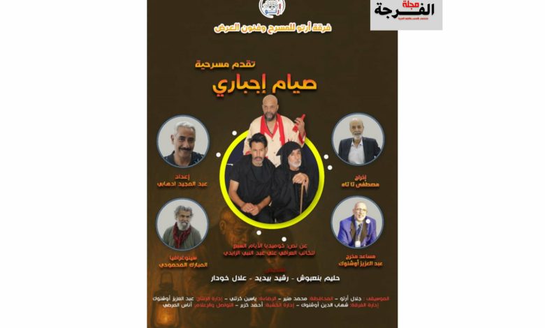 تستعد فرقة أرتو للمسرح وفنون العرض – أيت أورير لتقديم أحدث إنتاجاتها المسرحية بعنوان “صيام إجباري”، وهو عمل فني جديد يرتقب أن يعرض قريبا في عدد من دور العرض بالمغرب، ليواصل بذلك مسار الفرقة في تجديد المشهد المسرحي الوطني بروح من الإبداع والالتزام الفني.